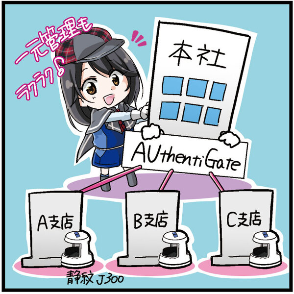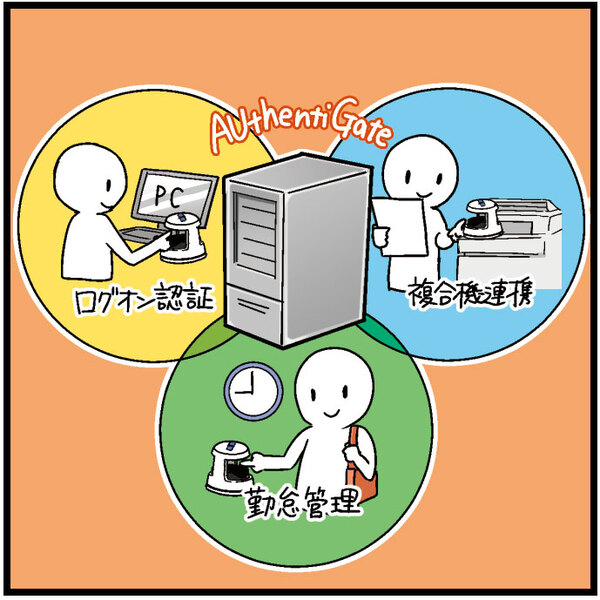 「静紋 J300」活用の場を広げるのが認証管理システム「AUthentiGate」です。ユーザー情報の一元管理が可能で、いつ、誰が、どのアカウントでログオンしたかを把握でき、認証情報の登録、変更、ログ監視などの運用負荷軽減につながります。