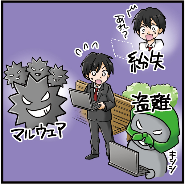 その一方、社外業務が増えることによって高まるのが「情報漏洩リスク」です。セキュリティ対策がしっかり行われていた社内とは異なり、PCやメディアの持ち出しによる盗難や紛失、データの盗聴、そして社内と比較してぜい弱になりがちなセキュリティ対策下でのマルウェア感染など、さまざまな漏洩の可能性があり、安全なテレワーク環境を確保するためには、しっかりとした情報漏洩対策が必要となってきます。