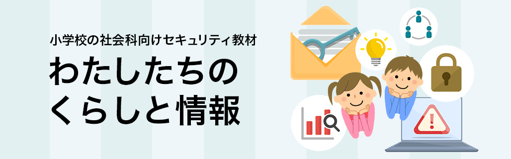 情報の安全な活用を学ぶ小学校の社会科向けセキュリティ教材です。映像とテキストでわかりやすく紹介していますので、是非ご活用ください。