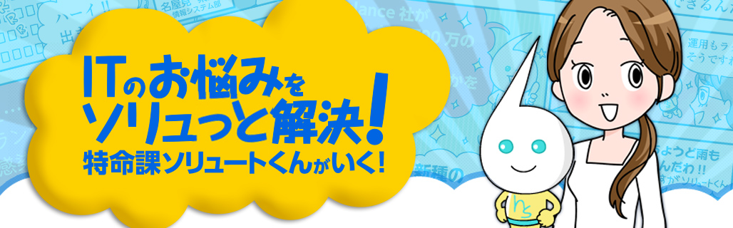 ITにまつわるさまざまな悩みを特命課社員「ソリュートくん」がソリュっとマンガで解決します。皆さんの職場の課題解決のヒントがきっと見つかるはずです。