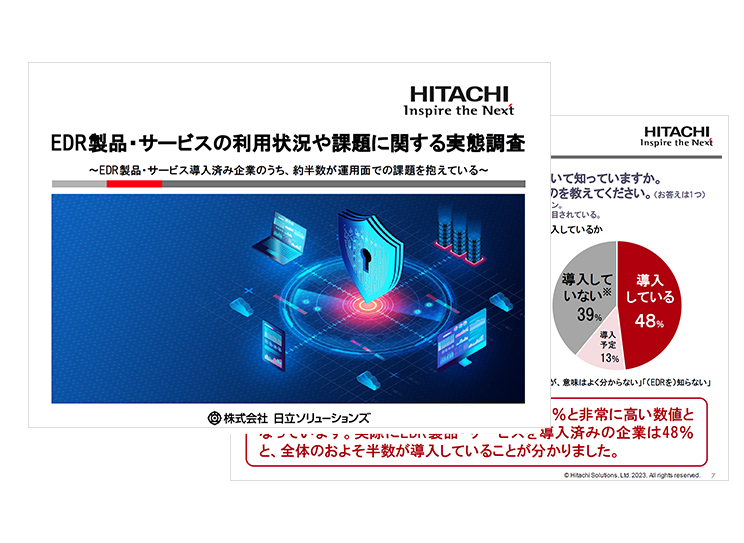 株式会社日立ソリューションズは、「EDR製品・サービスの利用状況や課題に関する実態調査」を実施しました。企業の情報セキュリティ担当者100名を対象に、「EDRの認知状況、および導入状況」「エンドポイントセキュリティ製品・サービスの導入状況」「現状のセキュリティインシデント対策状況」「EDR製品・ソリューションの導入決定理由」「EDR製品・ソリューション導入後の課題」「EDR製品・ソリューション導入への満足度」「EDR製品・ソリューション導入にあたってのハードル」「EDR製品・サービスについての今後の活用予定」「EDR製品・サービス利用にあたっての今後の希望」などをお聞きしました。各種分析結果をまとめた「調査レポート」もダウンロードできます。