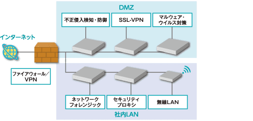 サイバー攻撃など社内の機密情報を狙う攻撃者からネットワークおよびサーバーを守り、社内ネットワークの安定運用を実現します。