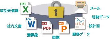 社内の顧客情報や技術情報といった重要データを、不正持ち出しや人的ミスによる情報流出などの脅威から守ります。