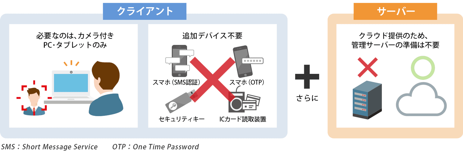 カメラ付きのPCさえあれば認証可能なため、別途追加で認証のための専用装置の用意が不要
