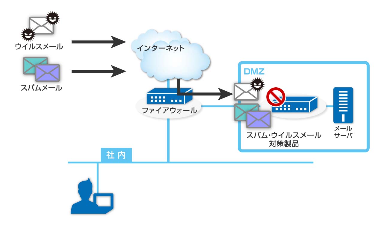 業務上不可欠なインフラ基盤であるメールシステムのスムーズな運用を実現するために、ウイルスメールの排除から誤送信による情報漏洩防止まで、メールのセキュアな運用を総合的に支援します。