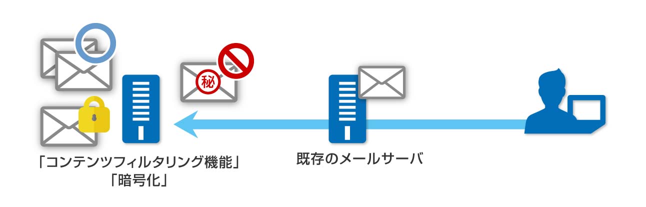 送信メールのコンテンツフィルタや添付ファイルの自動暗号化によりメールセキュリティを強化。