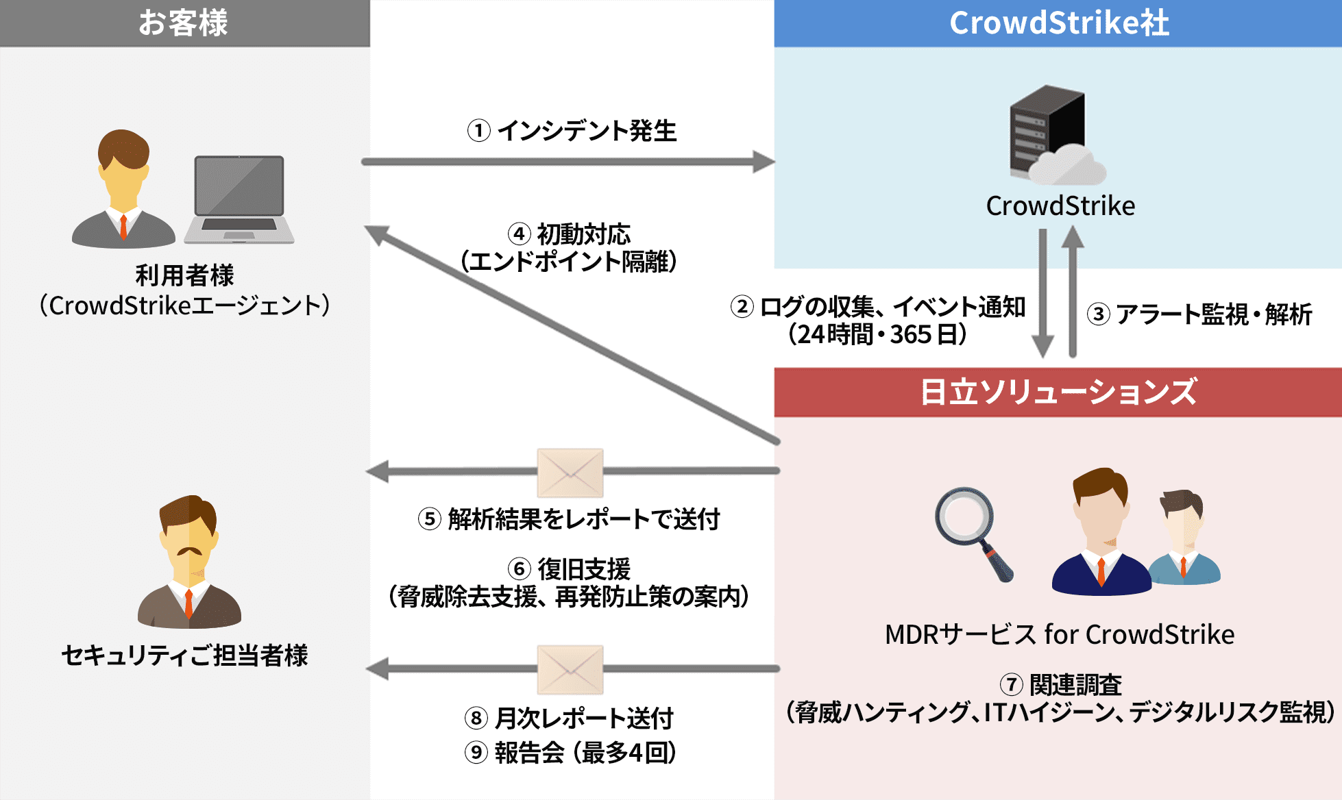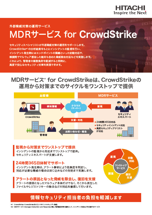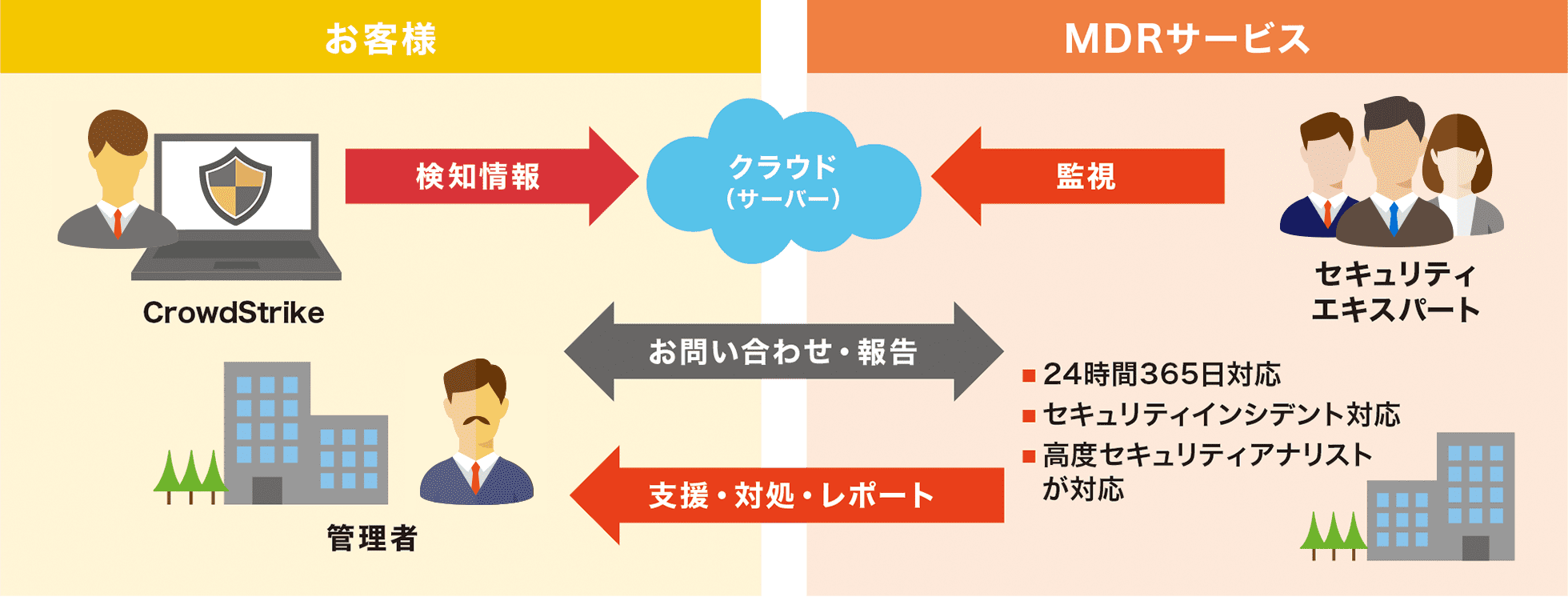 セキュリティエキスパートがCrowdStrike*1の運用から対策までのサイクルをワンストップで提供するサービス*2です。