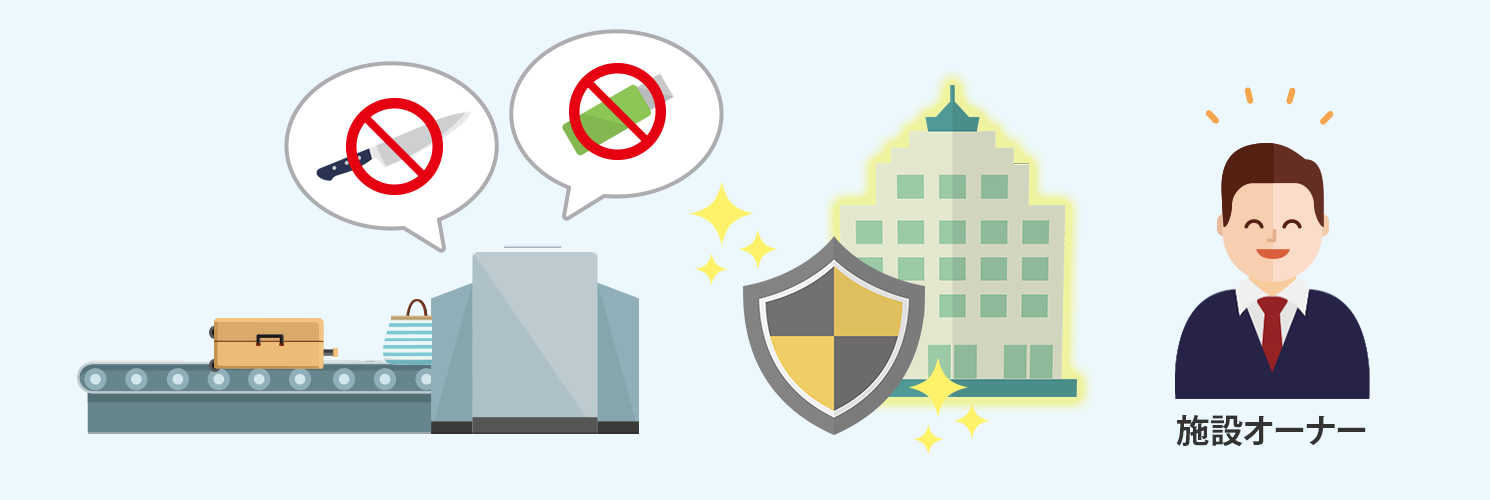 危険物や、情報漏洩につながるデータ記憶媒体などの見逃しを防止し、施設警備を強化