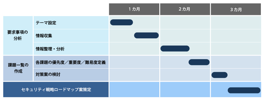 - お客さまのIT導入計画に即したセキュリティ戦略ロードマップ案を作成可能です。