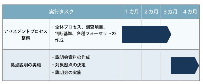 海外拠点に対する「アセスメントプロセスの整備」から、現地に赴いての「アセスメント 実施支援」まで対応します。