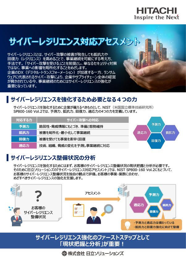 日立ソリューションズの サイバーレジリエンス対応アセスメント