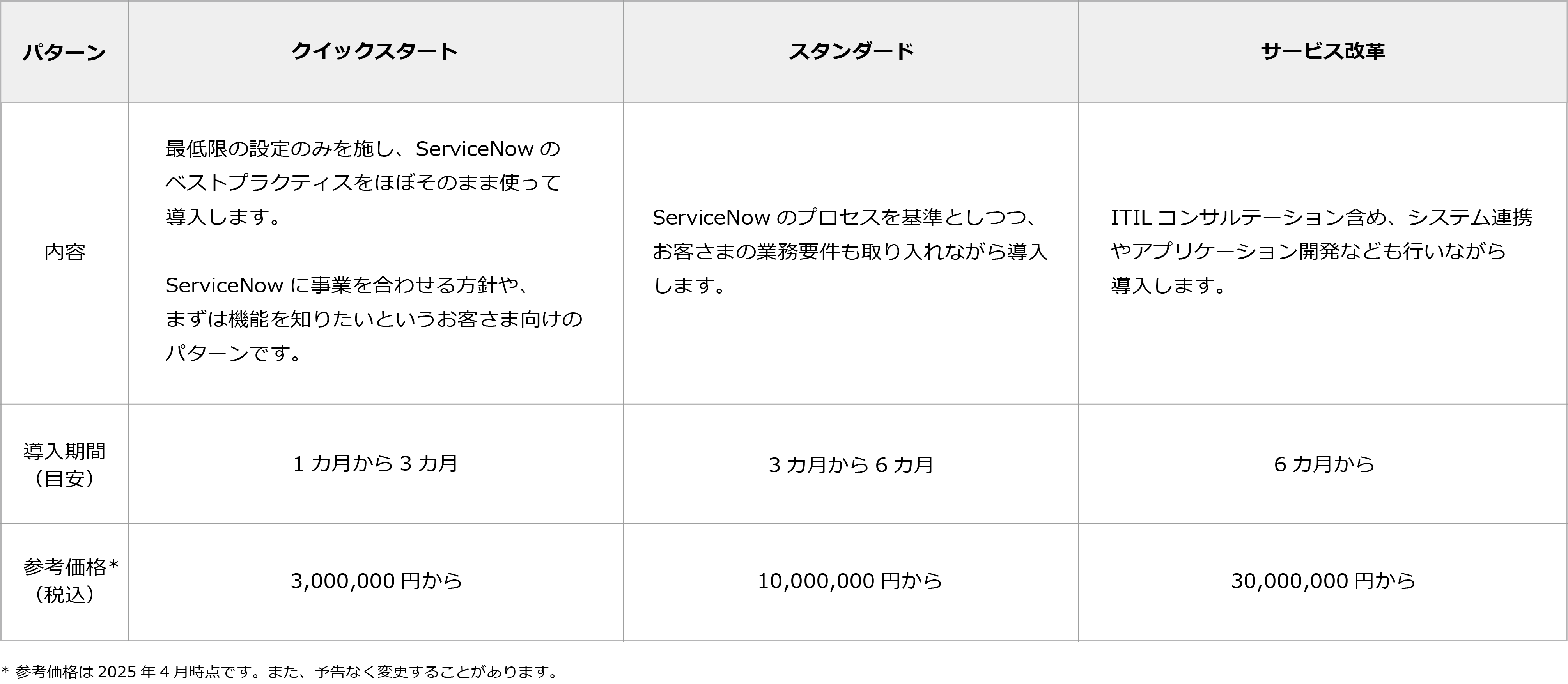 なお、当社では、ServiceNowのITSMをスモールスタートするための「
