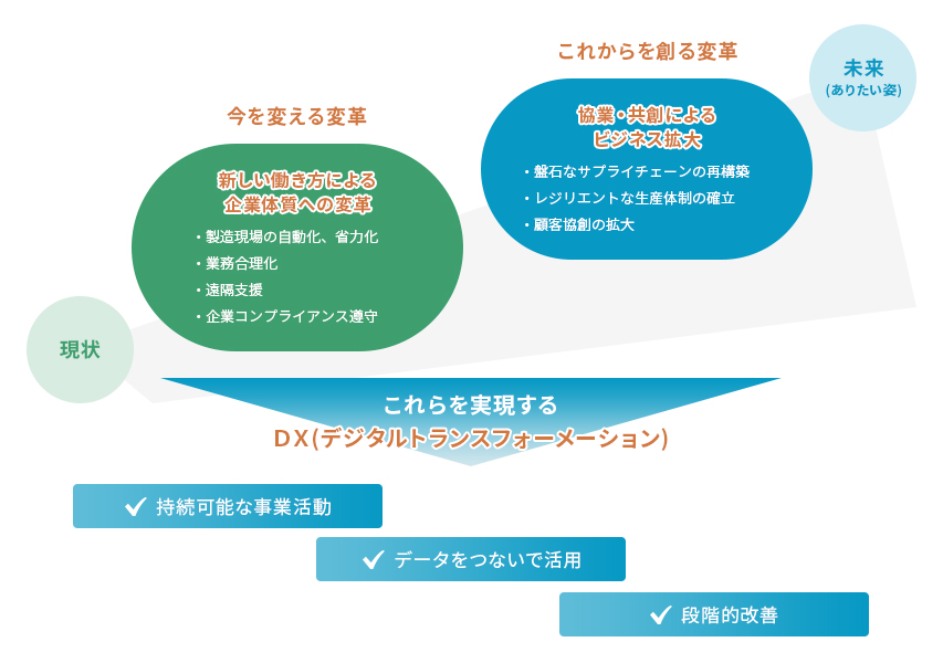 “新しい働き方による企業体質への変革“と“協業・共創によるビジネス拡大“の両輪を