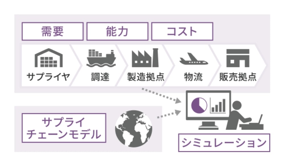 複数のサプライチェーン見直し案に対し最も効果の高い案を見つけることができます。