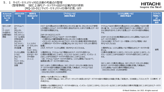 そして、Automotive SPICE for CybersecurityのBPとISO/SAE 21434のRQなどをまとめたサイバーセキュリティ対応活動の考慮点を図示。新海は「アイテムレベルとシステム開発レベルの異なる活動をどのように進めていくかが理解できると思います。モビリティに関連する国際規格や開発モデルの対応支援など、お客様のニーズに合わせたソリューションを用意していますので、ご活用ください」と述べ、講演を締めくくりました。