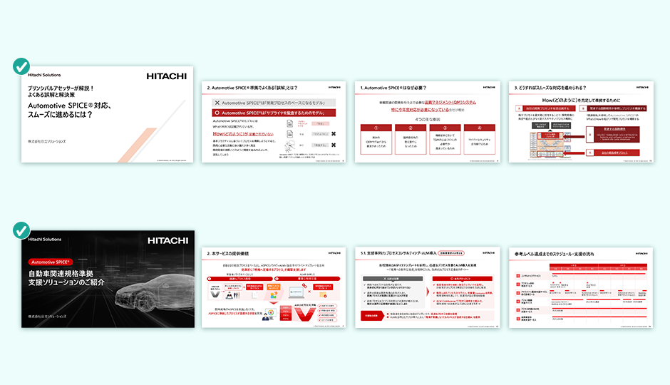 日立の実績・ノウハウを活用し、Automotive SPICE®・機能安全・サイバーセキュリティ対応を支援