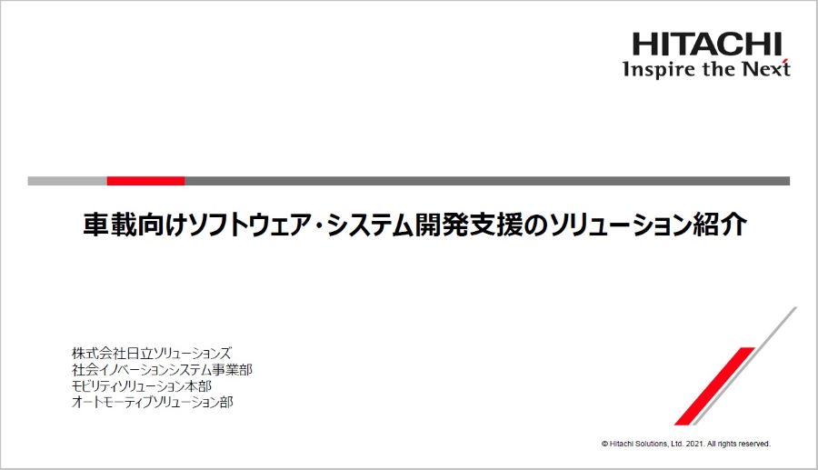 車載向けソフトウェア・システム開発支援のソリューション紹介2021年3月にWeb展示会「未来のくるま」が開催されました。当日の講演資料をダウンロードいただけます。