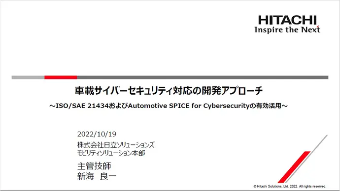 車載サイバーセキュリティ対応の開発アプローチ2022年10月にWebセミナー「DX Future Days 2022」が開催されました。当日のモビリティセッションの講演資料をダウンロードいただけます。