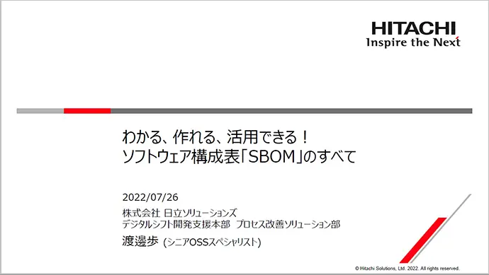 【オープンソースソフトウェアセミナー!】わかる、作れる、活用できる!ソフトウェア構成表「 SBOM 」のすべて
