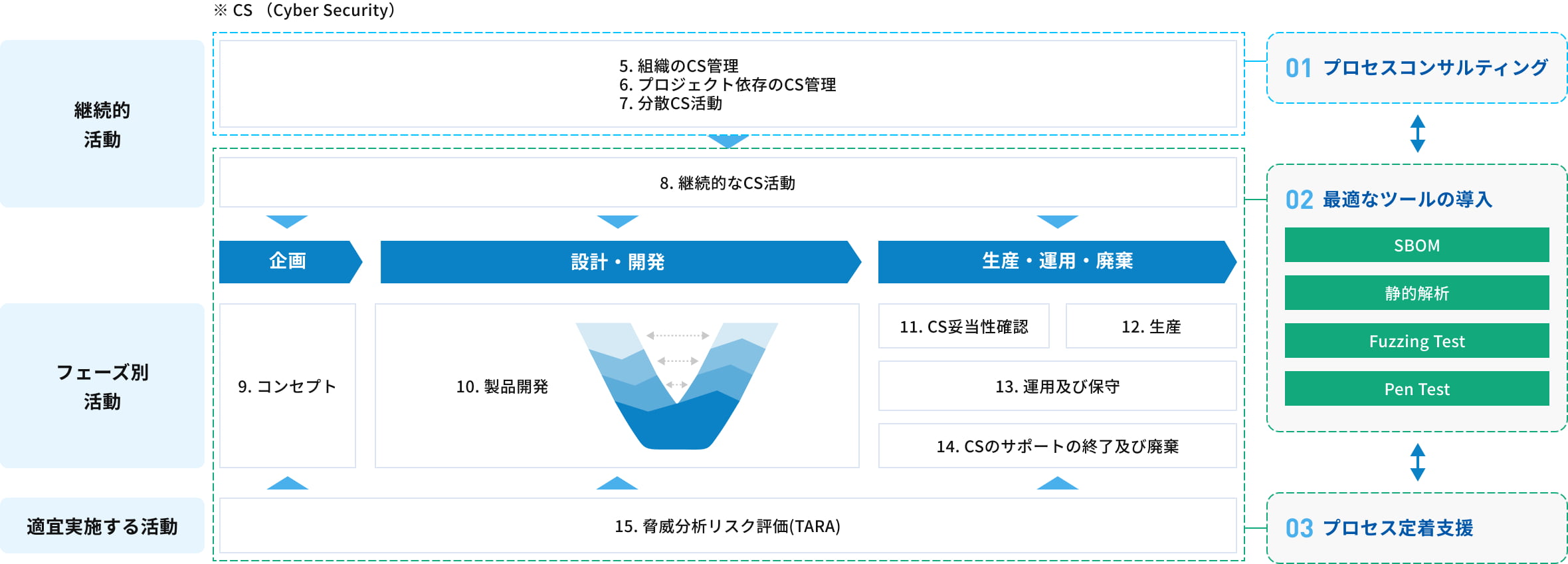 これにより車載セキュリティのプロセス定着・最適化を支援します。