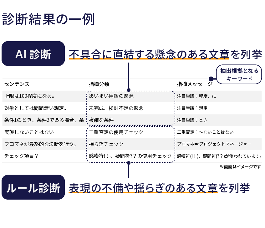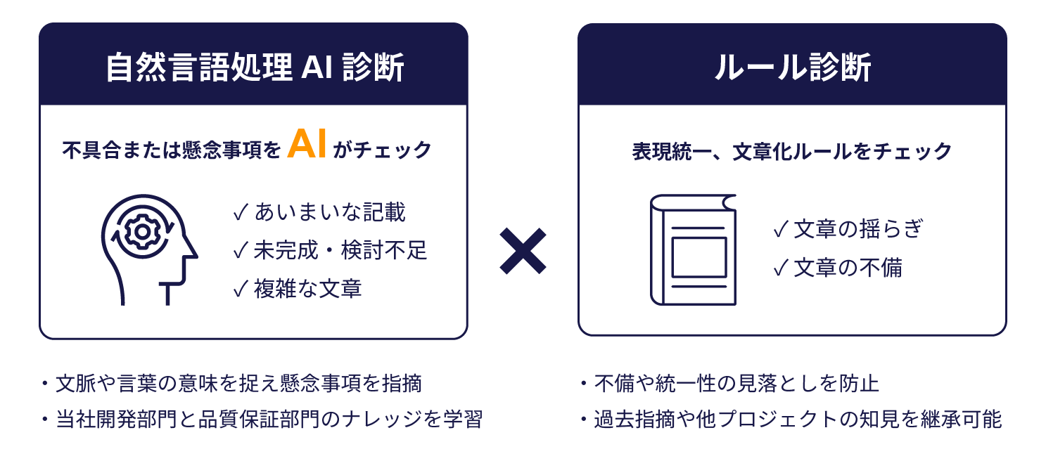 ルールベースの診断に加え、自然言語処理AIによる診断も可能。