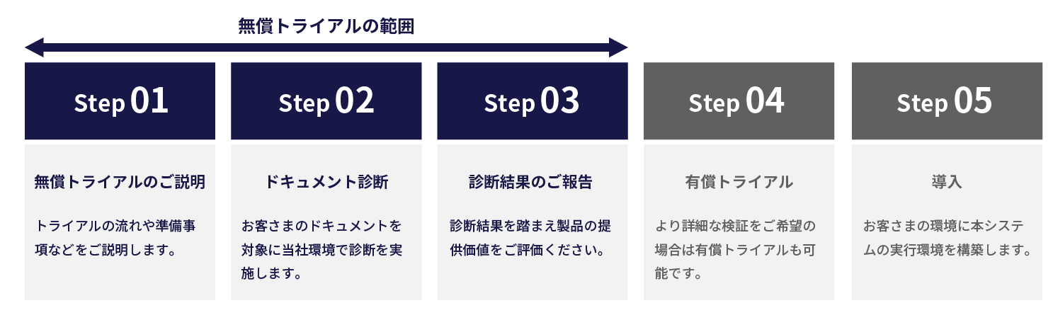 無償トライアルでは、お客さまのドキュメントを対象にした診断結果を提供します。