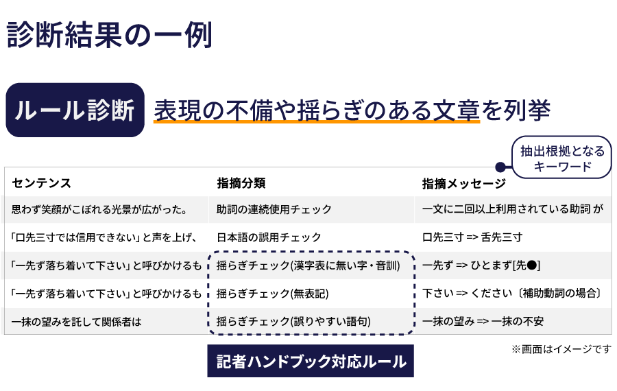お客さまの独自ルールと「記者ハンドブック」をベースとした診断が可能