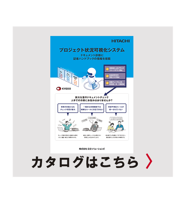 お客さま独自ルールと共同通信社発行の「記者ハンドブック」をベースに、文章の不備や表記の揺らぎを自動診断。目視での確認工数を削減します。
