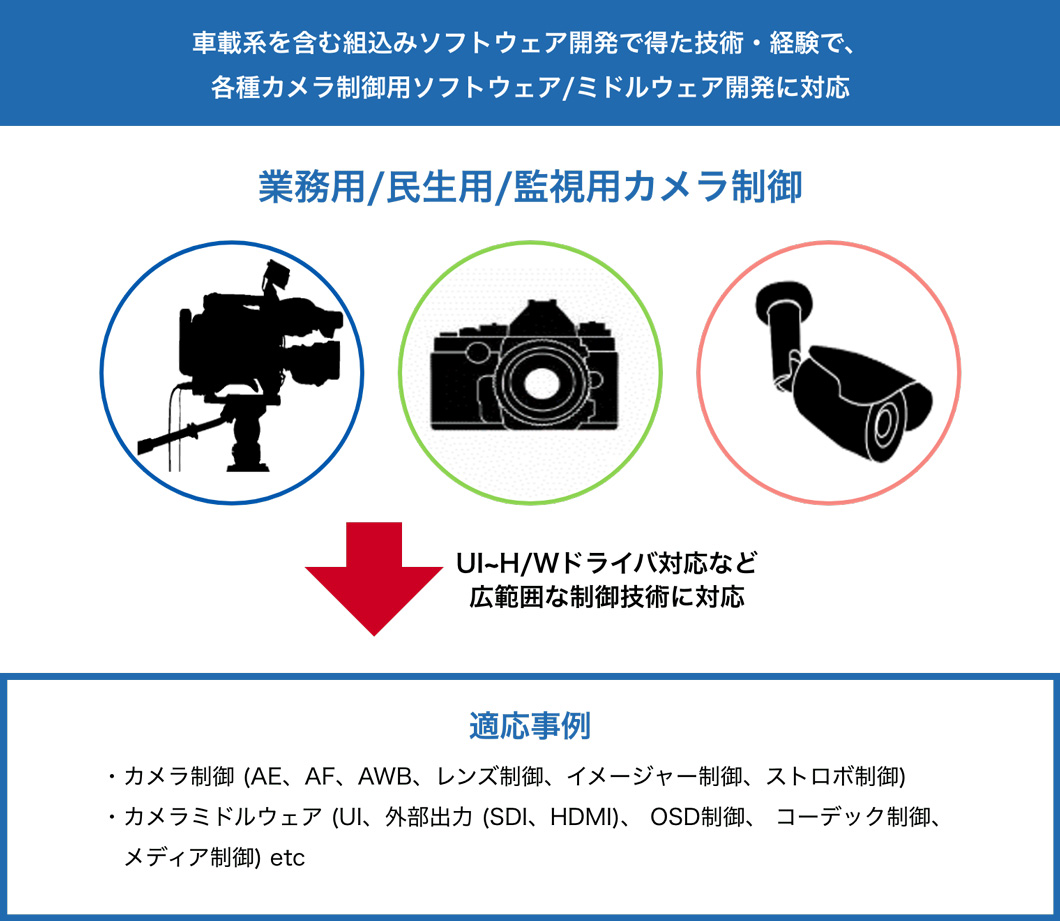 リアルタイムOS、メモリー管理、タイミング制御、各種コーデック対応、ファイルシステム、メディア対応など