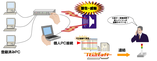 管理対象外パソコンが接続されたとき、接続した本人に対して威嚇。