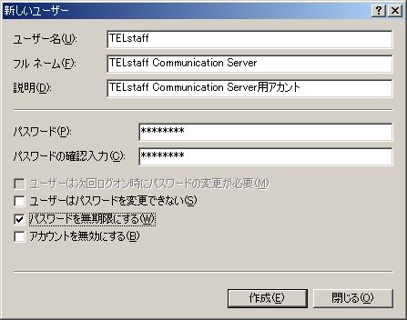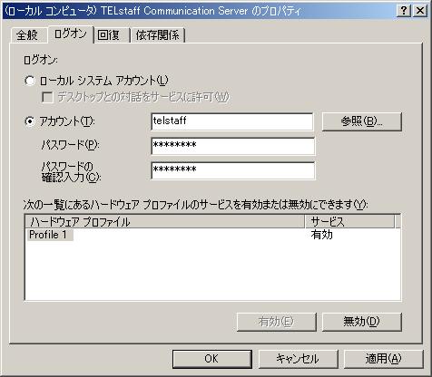 TELstaffサービスの安定稼動を図るため、サービスのログオンアカウントを変更してください。変更方法は以下をご覧ください。