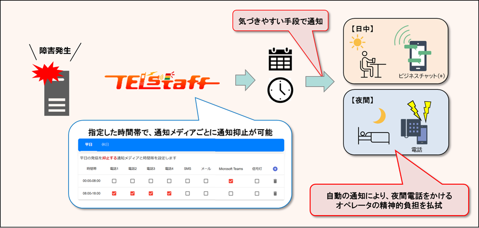 TELstaff クラウド型通報管理サービスでは重要な通知を見逃さず、無駄な通知を抑制する機能を備えています。