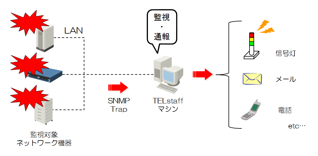 SNMPトラップ監視機能は、ネットワーク機器などが異常発生時に発行するSNMPトラップを監視し、通報を行う機能です。