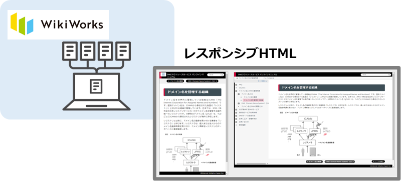 ドキュメントをWikiWorks上で一元管理し、ドキュメントの制作から公開までをワンストップで実現。