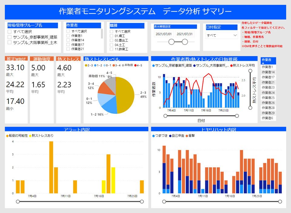 作業者の熱ストレス*1と転倒・落下*2を知らせるアラートを現場管理者に通知