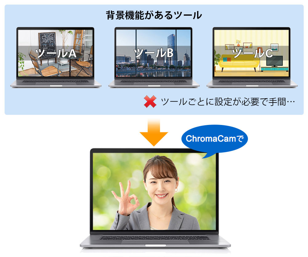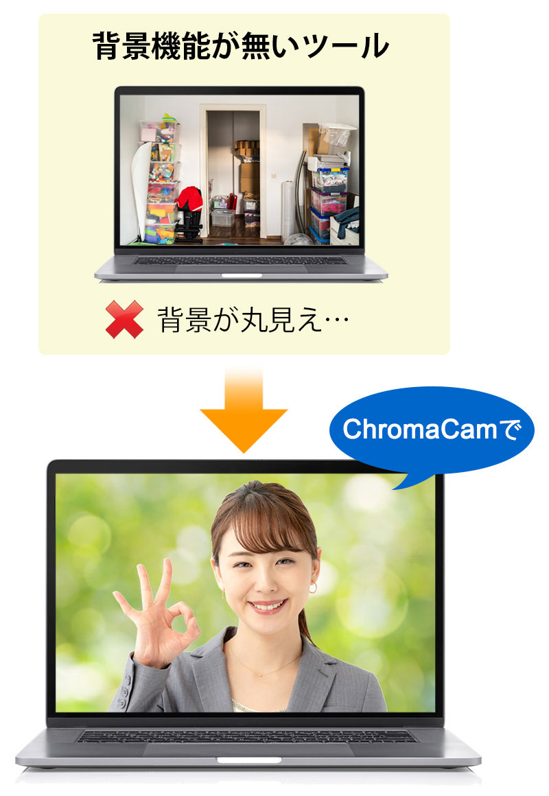 ChromaCamはWEB会議の背景設定に関するお悩みを、手軽に解決いたします。