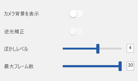 WEB会議実施中でも、自在に背景ぼかしレベルや最大フレーム数を変更できます。