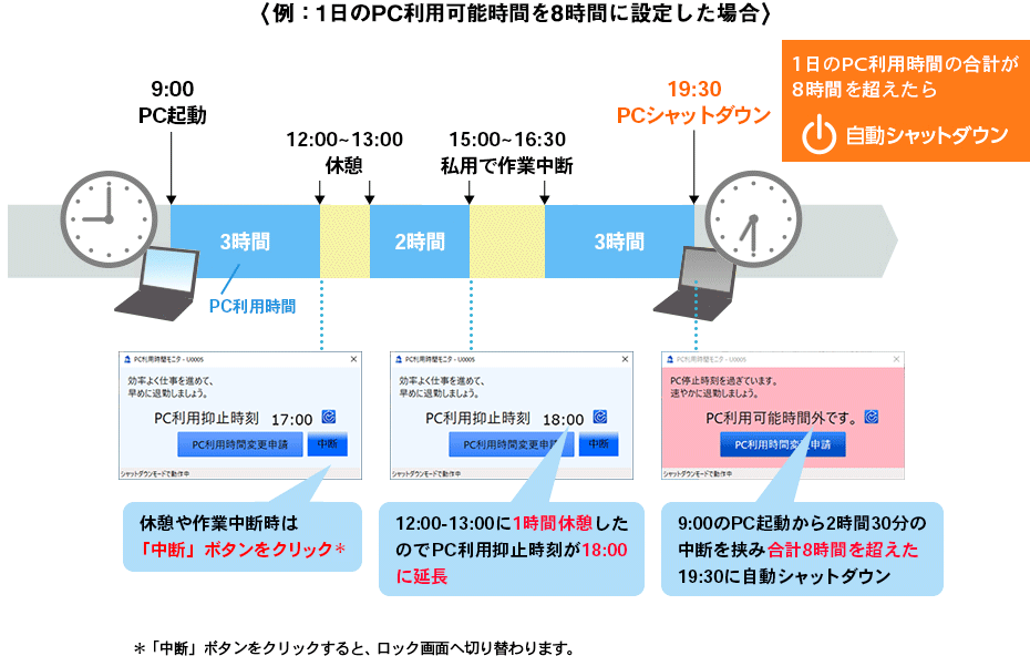 柔軟な働き方にも対応、日次のPC利用時間に応じた制御が可能