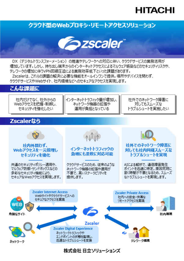 カタログダウンロードクラウド型のWebプロキシ・リモートアクセスソリューション Zscaler